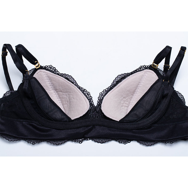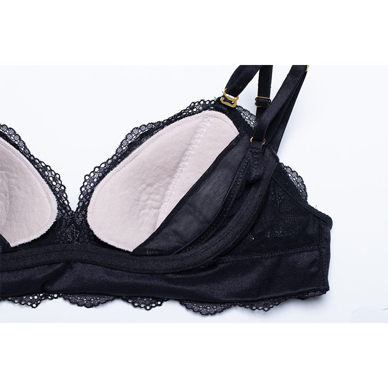 カップが付いていなくても適応できるフィット&ホールド感を実現。It uses stretchy lace made in Japan and fit to and hold your breast without caps.